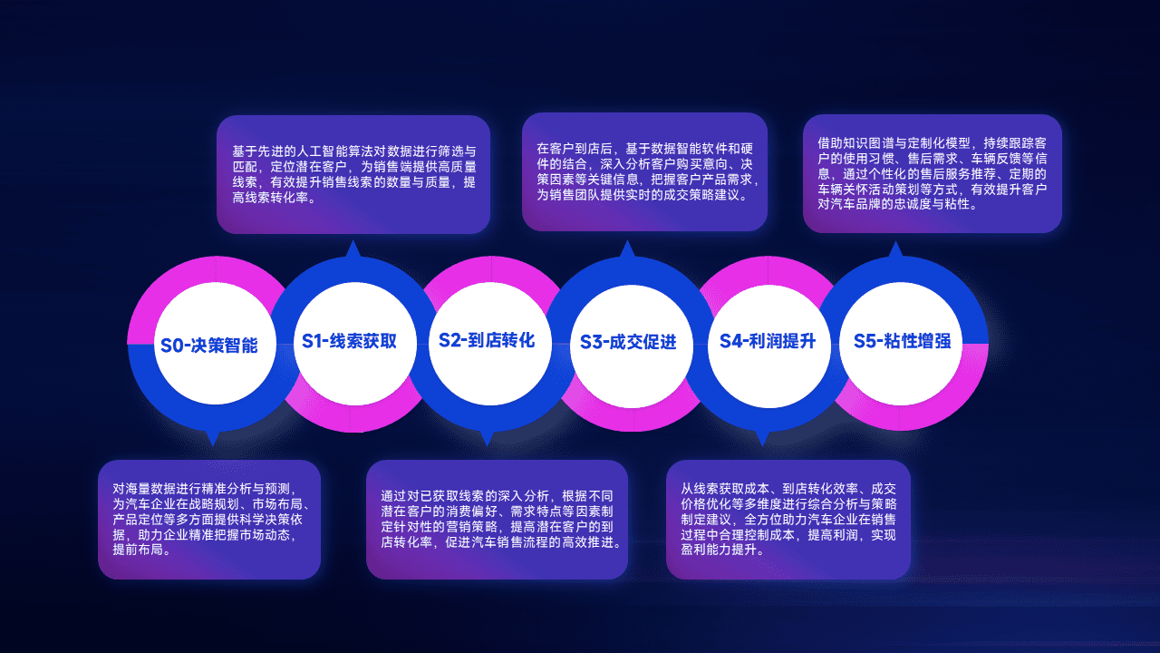 通过拓宽潜在客户来源、、、、优化线索分配并提高到店转化率,,,,以增强销售效率。。同时,,,,利用线索数据不断优化分析模型,,,有效提升转化率,,,,扩大营销影响力。。。。